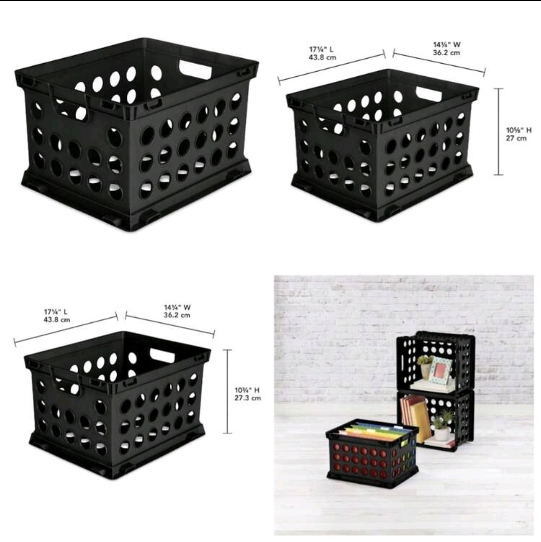 17 1/4" L x 14 1/4" W x 10 3/4" H. File Crate, Versatile Plastic Bin with Through Handles, Letter or Legal-sized File Storage, Stackable, BlackOutside Dimensions: 17 1/4" x 14 1/4" x 10 3/4"Interior Dimensions at bottom: 15" x 12" x 10 1/4"This versatile plastic File Crate can be used throughout the home, office, dorm, garage, and utility areas The ideal file tote organizer for keeping important paperwork sorted, neat, and containedConveniently accommodates either letter-size or legal-size file foldersUse multiple File Crates to create a customizable storage systemModular design provides the flexibility of vertical and horizontal stacking optionsGreat for sorting and displaying albums and books in entertainments areasIntegrated carry-through handles make this a portable storage solution and phthalate-free